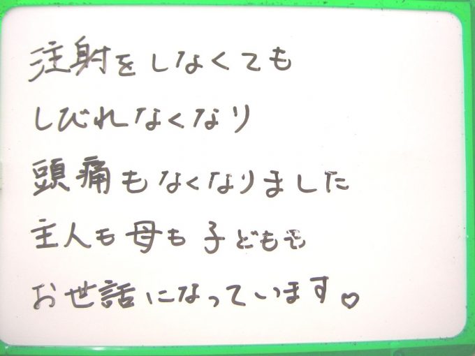 しびれなくなり 頭痛もなくなりました